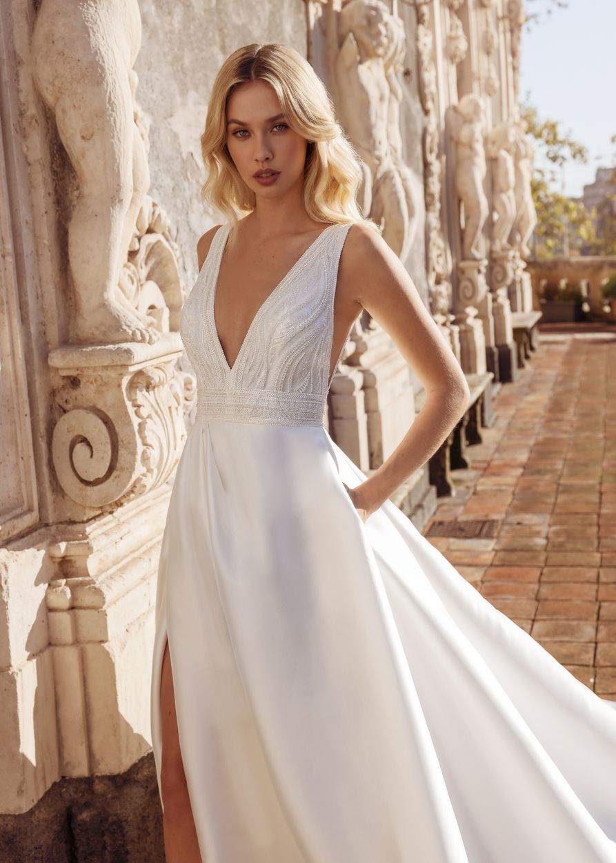 A l'origine il s'agissait d'une boutique spécialisée dans la dentelle. Cet héritage se retrouve dans ses collections actuelles en étant l'élément principal des différentes créations. Nous adorons particulièrement le travail de la dentelle sur les décolettés à illusion, les dos spectaculaires et les manches